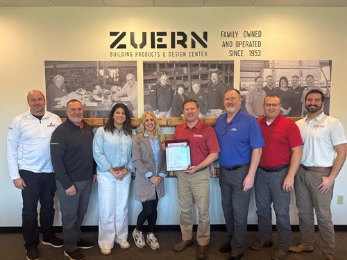 “We are humbled and honored to be selected as the 2025 Pro Dealer of the Year,” said Tom Zuern, President. “This award is embodied in our family and team culture of connectivity. Because a connected team is a powerful team. We pride ourselves at doing the common, uncommonly well in serving our professional builder and remodeler customers.”