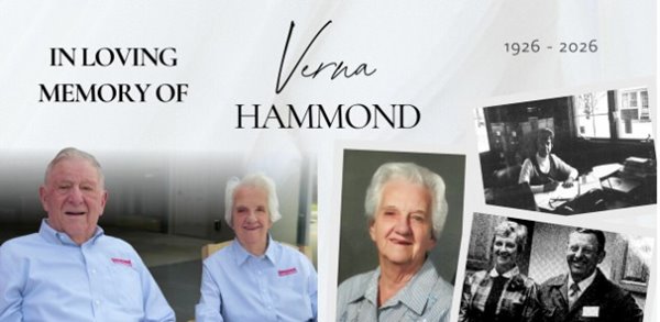 Verna was deeply respected for her work ethic and her commitment to family, employees, and community. She worked for Hammond Lumber Company for 58 years, beginning from a home office while raising her children and later full-time in the company office. Verna retired at the age of 85, a testament to her dedication. She believed in showing up early, doing the job right, and taking pride in work well done. Many of the values that define Hammond Lumber Company today—integrity, responsibility, and care for people—reflect the example she set over a lifetime.